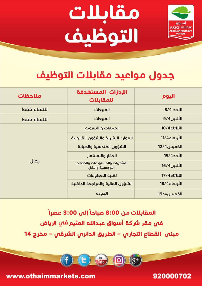 أسواق عبدالله العثيم On Twitter تبحث عن وظيفة في الرياض أو المملكة الق نظرة على اعلان التوظيف في اسواق العثيم Http T Co 4ijkeyjk4r Http T Co Spho8mkkfx